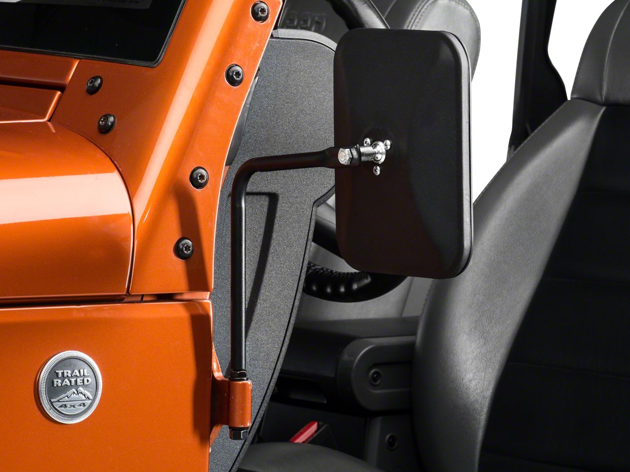 Door off hinge mirrors for jeep wrangler tj jk jku. Quadratec adventure mirrors quickly fit into the door hinge pin holes when your doors are removed allowing you to get on the road or trail faster without having to fiddle. Esright rectangular adventure door hinge mirrors side view shake proof door off mirror for all jeep wrangler jk jl 07 18 1 pair textured black 3 7 out of 5 stars 5 32 99 32. Driver and passenger side mirrors included.